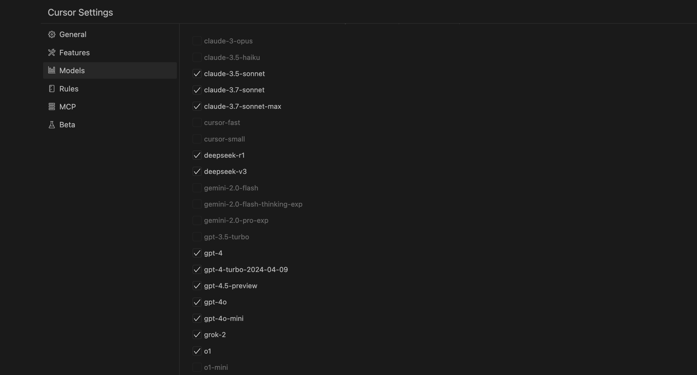 If your preferred model isn’t in Cursor’s preset list, you can add it manually:- Find Add model at the bottom of the Models settings page